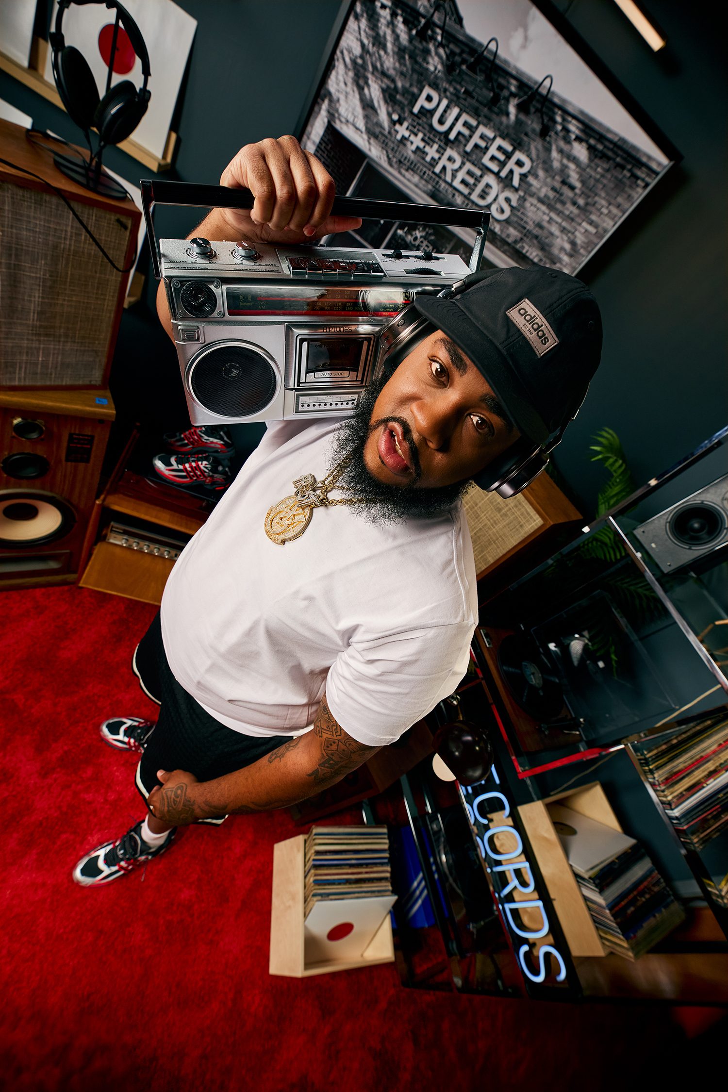 A photoshoot and set designed to celebrate the adidas x Puffer Reds Adistar sneaker drop, nodding to music nostalgia, Detroit talent, and Puffer Red's cultural legacy.